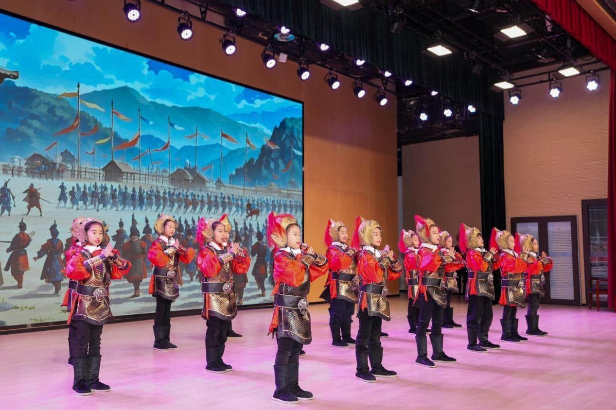 附属青岛学校学生《木兰》音乐剧选段表演,“美之声” 合唱团表演,管弦乐表演;