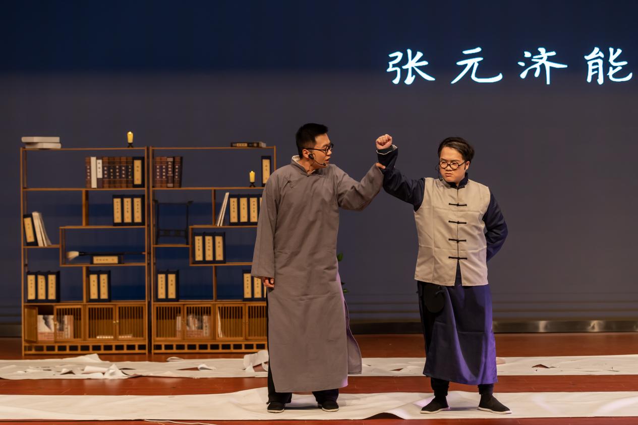 闭幕式伊始,华东师范大学青年史学社的学子倾情演绎了展演剧目《中华旧籍的守望》,生动再现了“中国现代出版第一人”张元济先生于民族危亡之际抢救中华典籍、主持编纂《四部丛刊》的历史壮举。他将商务印书馆从一个印书作坊发展成为中国近代史上最具影响力的出版企业,彰显出近代知识分子守护文明火种的家国情怀。