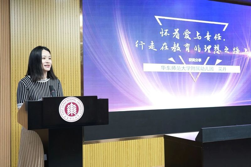 ▲ 华东师大附属幼儿园园长吴丹发表获奖感言