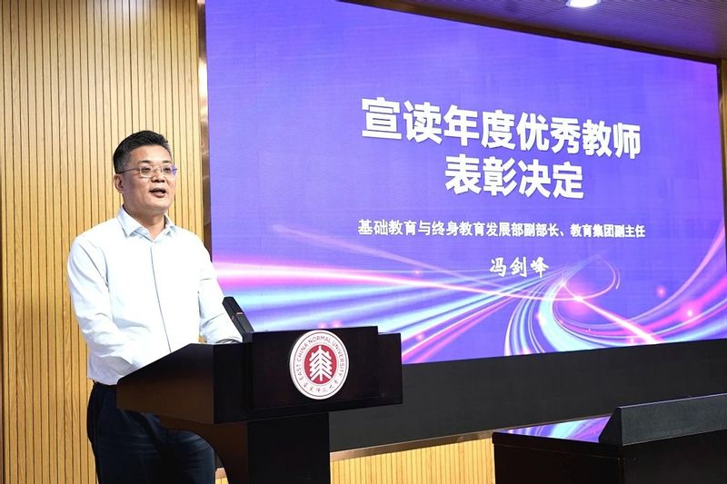 ▲ 华东师大基终部副部长、教育集团副主任冯剑峰宣读优秀教师表彰决定