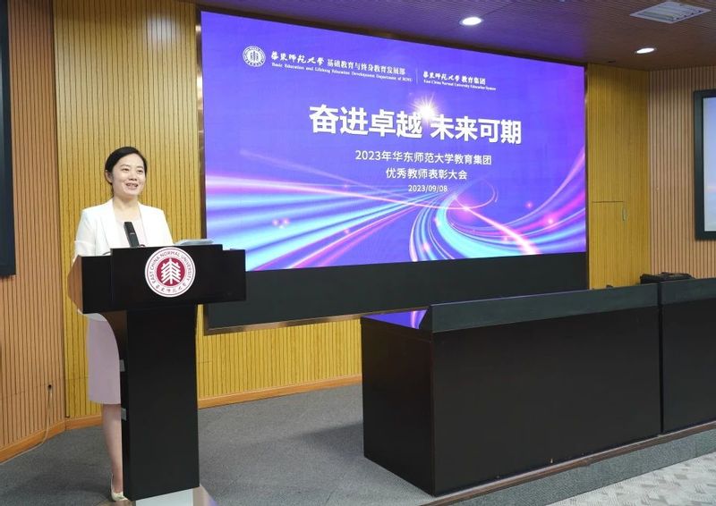 为庆祝我国第39个教师节、党的二十大胜利召开后的第一个教师节,9月8日下午,2023年华东师范大学教育集团教师节表彰大会在华东师大普陀校区举行。