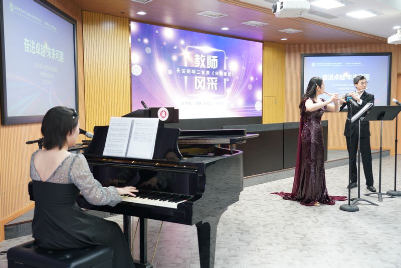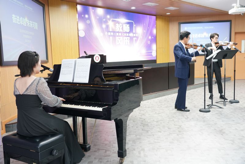 来自上海华旭双语学校的老师们带来精彩的器乐表演,通过小提琴二重奏、长笛钢琴三重奏倾情演绎,传达了教育人坚守三尺讲台,守望教育梦想的热情。