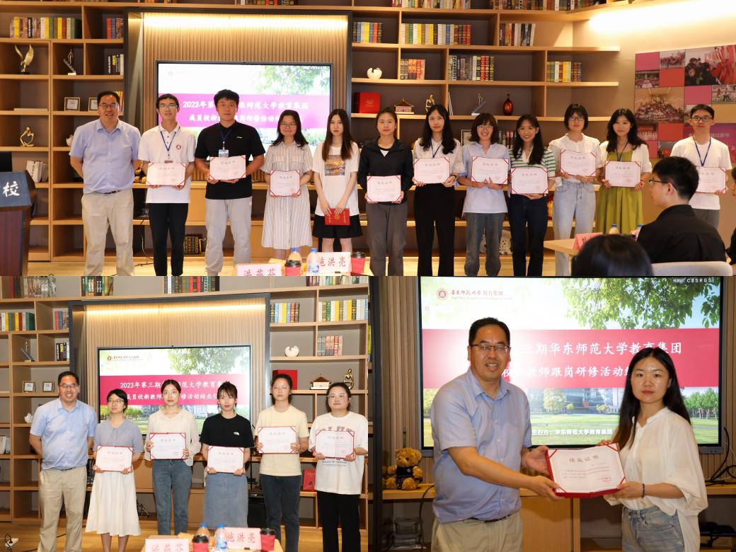 落花浅夏、缕缕徐来,上海的初夏,阳光璀璨。在这温暖的阳光里,华东师大教育集团成员校第二期骨干教师研修班、第三期新教师研修班圆满结业。结业仪式分两场举行,骨干教师结业仪式于5月26日上午在华东师大二附中附属初中举行,新教师结业仪式于6月1日上午在华东师大二附中前滩学校举行,华东师范大学基础教育与终身教育部副部长施洪亮、二附中前滩学校党支部书记兼常务副校长洪燕芬、各校师训负责教师、全体跟岗教师参加了结业仪式。