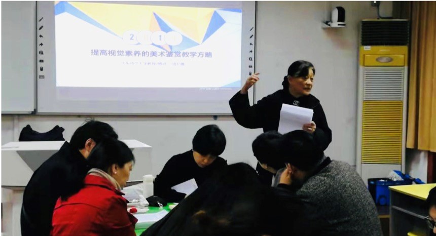 钱初熹教授在“提高视觉素养的美术鉴赏方略”的专题报告中,从问题情境入手,结合国内外经典案例对当代学校教育开展专题美术鉴赏课程的背景、教学目的、鉴赏内容和教学方法等进行了系统的阐述,大量的学科前沿知识、海量的信息、多元的美术鉴赏教学方略吸引了与会教师的专注力。教师们纷纷表示受益匪浅,既提高了对美术鉴赏教学的认识,也学到许多美术鉴赏教学的方法。