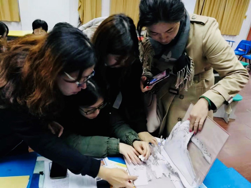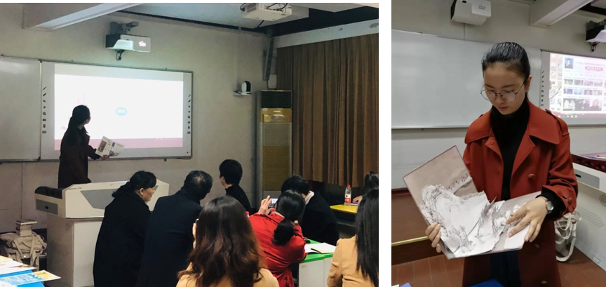 研讨会结束后,钱初熹教授为联盟的教师们发放了她自己亲自选购的中国画名品画册。教师们还观摩了华东师范大学美术教育研究方向研究生们制作的帮助中小学生分析与理解美术作品的学习单、立体作品等,直观感受丰富多样的美术鉴赏教学方法。这些方法给教师们带来了很多启示。
