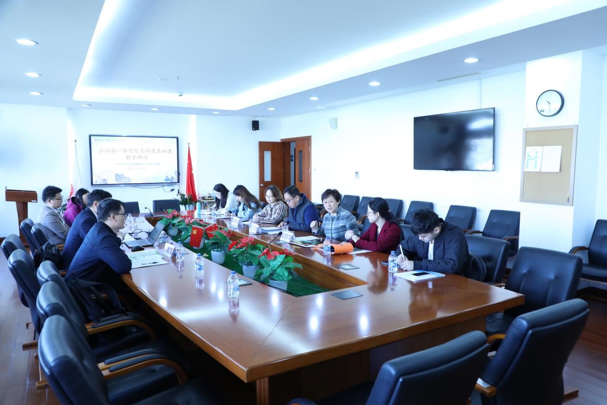 11月10日上午,信息技术组在华东师范大学闵行紫竹基础教育园区开展了“小初高一体化信息科技基础课”大教研活动。华东师范大学教育学部教育学系副教授杨光富,教育信息技术学系副教授、上海智能教育研究院院长助理江波,华东师大二附中附属初中校长施洪亮,华东师范大学附属紫竹小学校长张计蕾等专家和领导出席本次活动。