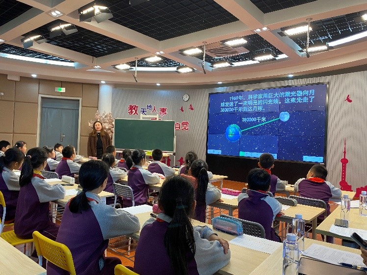 华妹老师执教的四年级《线段、射线、直线》一课,从地球射向月球的一束光线这一情境引入,调动学生的空间想象,进一步引导学生辨析线段、射线、直线的联系。通过引导学生动手画轨迹的方式,用直观想象来帮助概念的理解,体现了“空间想象”素养的培养。