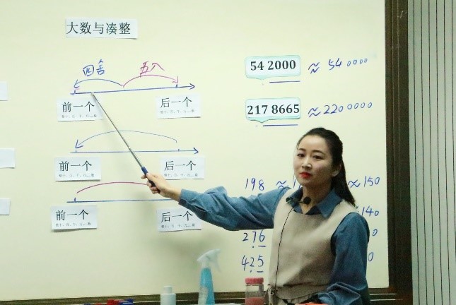主题示范课之后,华东师范大学附属外国语实验小学青年教师朱振环为大家带来了一节“大数与凑整”的实践探索课。如何把问题解决的思想体现在日常数学知识的教学中,一直是老师们关注的问题,朱老师在这堂课中把解决问题与数学知识的教学有机结合起来,作了新的尝试。朱老师以“双十一特卖会”为问题情境,从已学的“四舍五入法”引入,由连贯的数学问题引导学生掌握“去尾法”和“进一法”。在练习巩固环节,朱老师设计了许多真实的数学情境,让学生体会三种不同求近似值方法的异同。整堂课任务设计环环相扣,学生积极参与讨论,课堂氛围十分活跃。朱振环老师把问题解决理念很好的体现在在“大数与凑整”的教学中,使听课老师得到了启发。