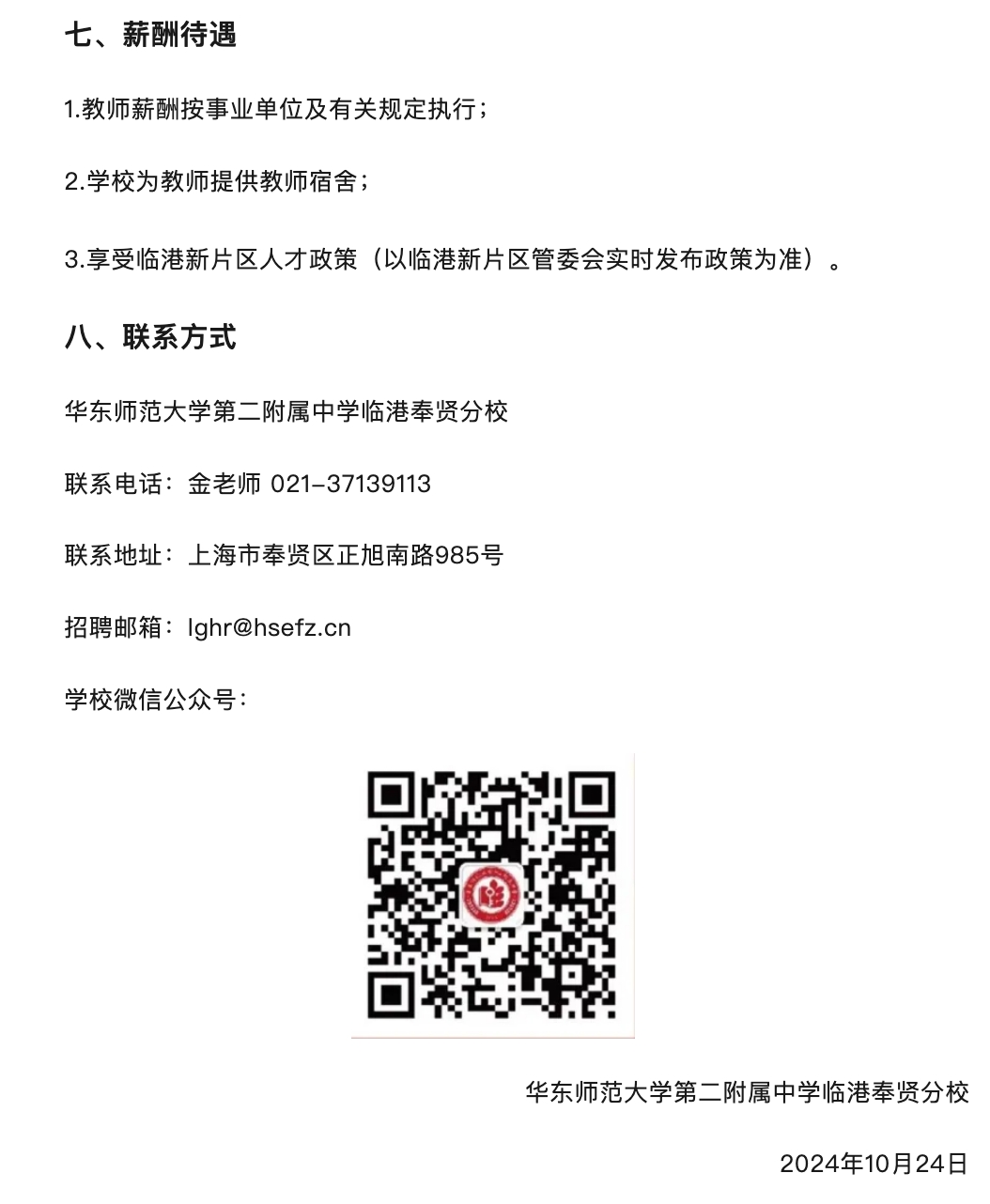 华东师范大学第二附属中学临港奉贤分校2025学年教师招聘公告