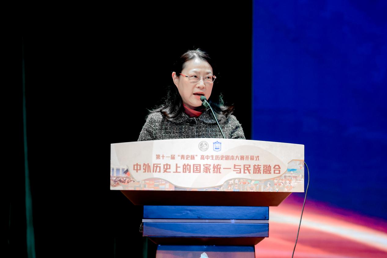 上海市教师教育学院(上海市教育委员会教学研究室)中学教师部部长汤青回顾了“青史杯”的发展历程:“青史杯”从上海走向全国30多个省市自治区和港澳特别行政区,成为学科育人的亮丽名片。她总结道,青年学子以青春之笔书写历史之思,以戏剧之力涵养家国情怀,每一份剧本都是与先贤的对话,每一次演绎都是对文明的守望。