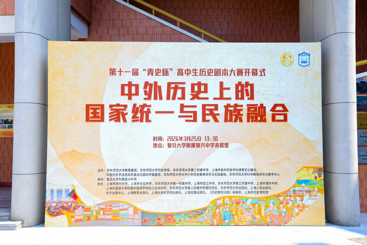 2026年3月25日,第十一届“青史杯”高中生历史剧本大赛开幕式在复旦大学附属复兴中学隆重举行。本届大赛以“中外历史上的国家统一与民族融合”为主题,旨在引导青年学子在历史长卷中探寻文明交融的智慧,感悟中华民族多元一体的深厚底蕴。
