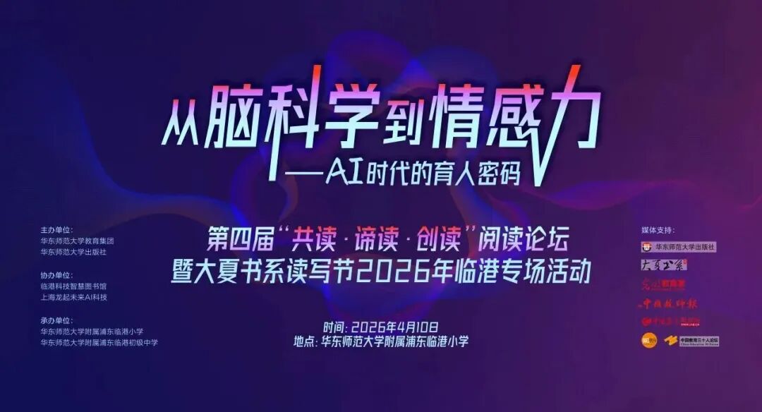 4月10日,由华东师范大学教育集团、华东师范大学出版社主办的第四届“共读·谛读·创读”阅读论坛暨大夏书系读写节2026年临港专场活动在华东师范大学附属浦东临港小学举行。