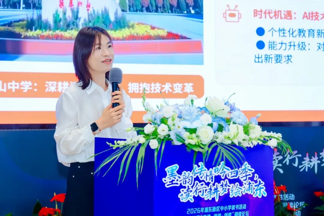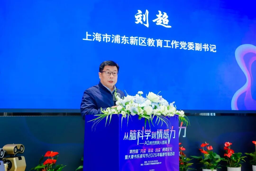 浦东新区教育工作党委副书记刘超在致辞中谈到,当技术可以高效完成标准化知识的传授,教育者更需要回归教育的本原,培养具有健全人格和高阶情感力,创新思维和精神品格的时代新人。他还强调了阅读的重要性,提出坚持以阅读涵养品格、启迪智慧、赋能成长,让阅读成为教师专业发展的自觉追求和学生成才发展的必备素养。