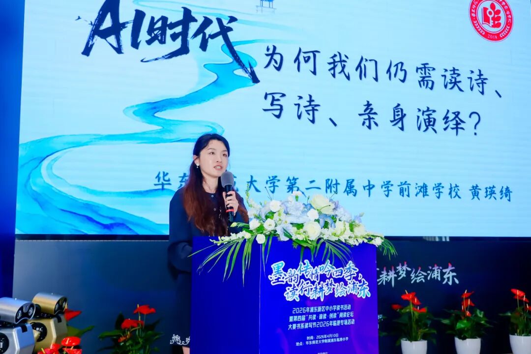 华东师范大学第二附属中学前滩学校教师黄瑛绮则以一场“春日诗会”,回答了“AI时代为何还要费力写诗”的疑问。她表示:AI的创作是数据的组合,而孩子的诗,是生命律动的结果。通过诗会、戏剧、文化探究等融合性实践,可以激发卓然独立的思考与越而胜己的超越。