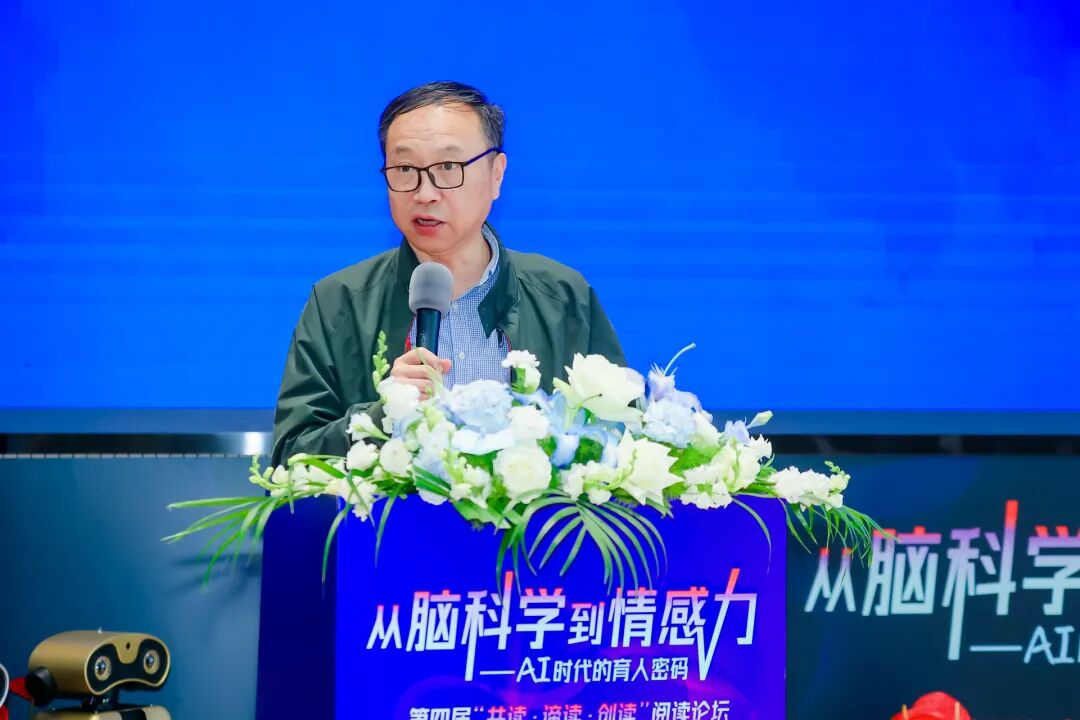 华东师范大学副校长戴立益在致辞中向教育者发出四点呼吁:一是以阅读为桥,推动脑科学、情感教育、AI与教育教学深度融合,形成可复制的育人范式;二是以课堂为基,将前沿理论转化为教育行动,让科学育人、温暖育人成为每个教师的自觉;三是以协同为要,深化多方合作,共建优质教育生态;四是以育人为本,守护每个学生在科学与人文的滋养中向阳成长。