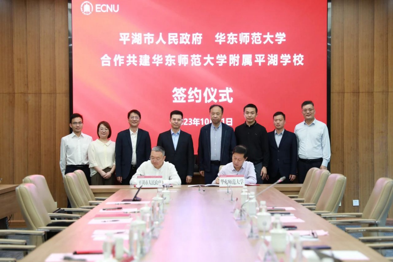 ▲与平湖市签约共建“华东师范大学附属平湖学校”