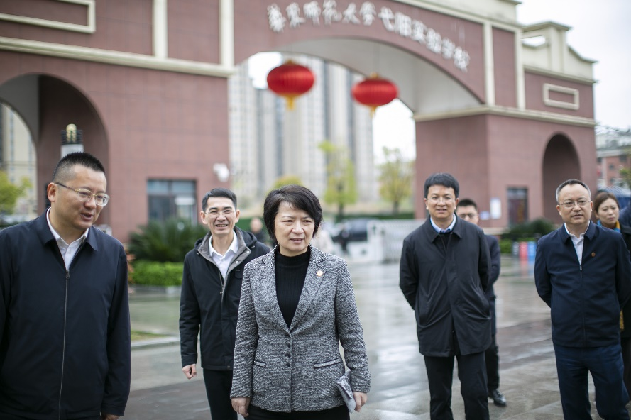 ▲华东师大党委书记梅兵一行调研华东师大方志敏基础教育园区