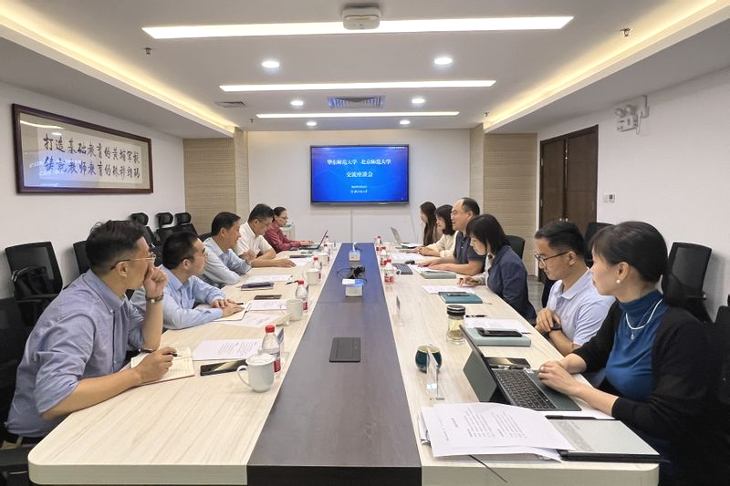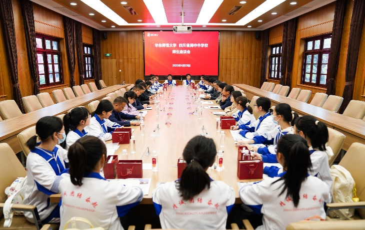 ▲四川阆中中学校师生来沪研学,华东师大党委书记梅兵与师生座谈