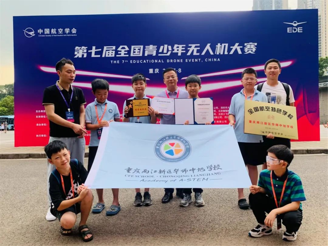 ▲华师中旭学校学生在第七届全国青少年无人机大赛中收获2银6铜,学校被授予全国航空特色学校、全国优秀组织单位