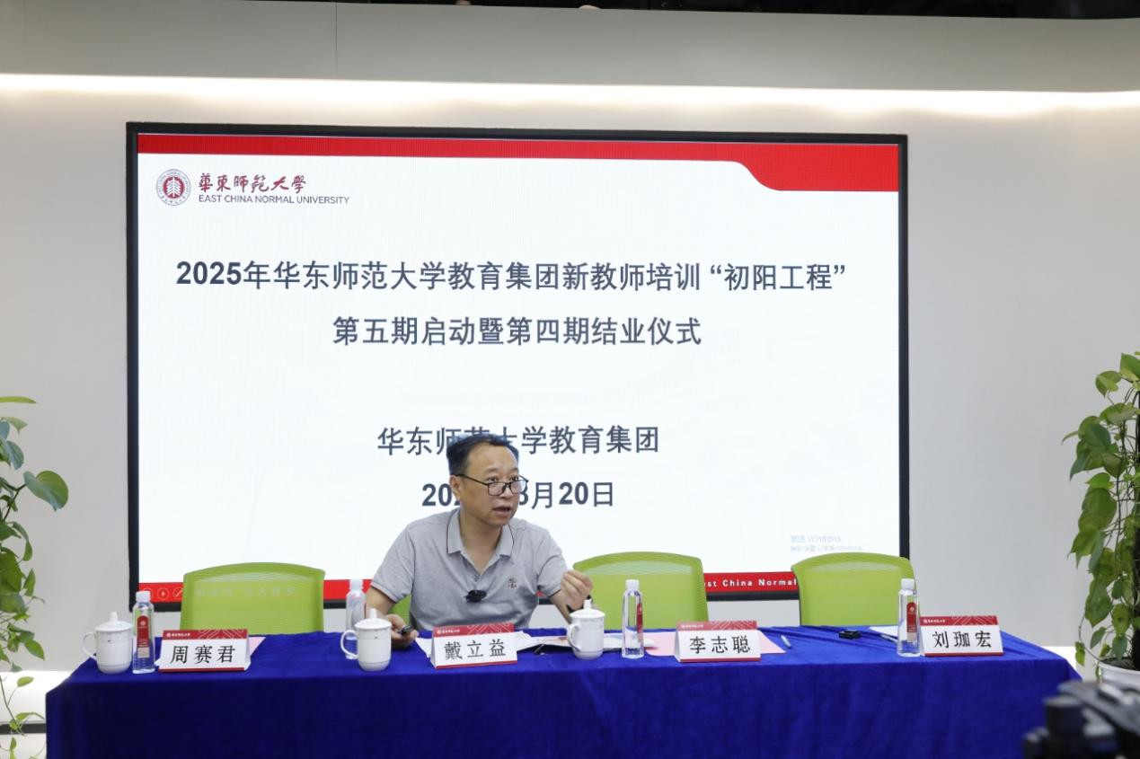 2025年8月20日上午,华东师范大学教育集团 “初阳工程” 第五期开班仪式暨第四期结业仪式以 “线上+线下” 相结合的形式隆重举行。华东师范大学副校长、教育集团主任戴立益,基础教育处处长李志聪,基础教育处副处长周赛君以及第四期、第五期共计46所学校1400余名校长、学员共同参与了此次活动。本次仪式由华东师大基础教育处刘珈宏主持。