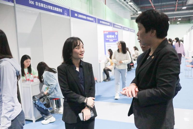 当天,校党委副书记杨昌利到场走访参会单位。她特地来到教育集团成员校所在区域,了解成员校用人需求。教育集团工作人员介绍了本次各参展成员校,集团联合学生职业发展中心开展的调研活动、各院系在成员校的实习基地建设情况以及华东师大毕业生在成员校的聘用情况等。杨昌利感谢教育集团对学校毕业生就业一如既往的支持。她指出,分布在全国的教育集团成员校是华东师大历届毕业生的重点就业单位,期待有更多的成员校在学生实践、实习及就业等方面提供更多支持。