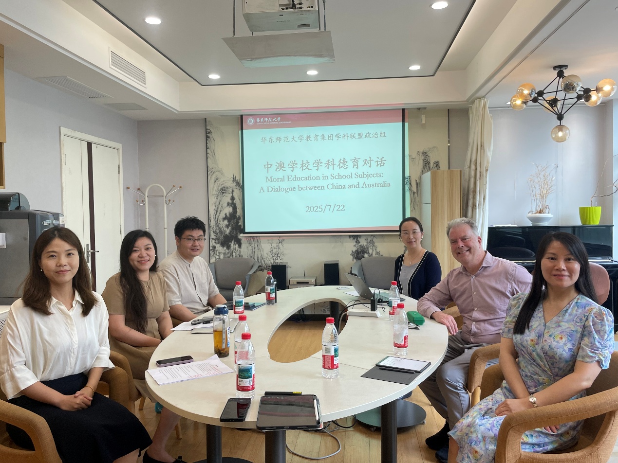 教育集团自去年起策划集团化教研丛书,并向集团成员校发起优秀教研案例征集。目前丛书的“学科德育”分册(暂名《学科德育教研共同体实践案例精选》)已成稿,并进入华东师范大学出版社审校环节,本册共收录20余所成员校不同学科和不同德育主题的优秀案例。为进一步促进交流、扩大影响力,2025年7月25日,学科教研联盟政治学科组在华东师范大学闵行校区举行了以“中澳学校学科德育对话”为主题的国际交流活动,吸引了广泛关注与参与。