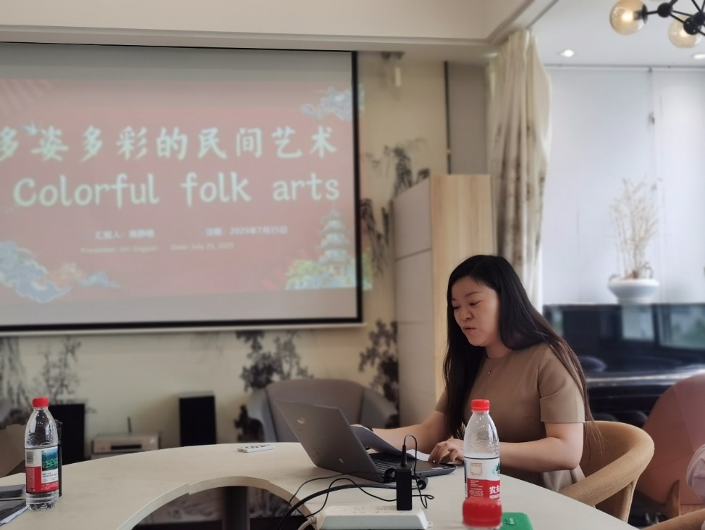 华东师范大学第二附属中学前滩校区施静艳丽老师则聚焦传统文化,以《多姿多彩的民间艺术》为题,分享了如何将浦东非遗文化融入学科德育,实现社区资源与课程建设的有机融合(图4)。
