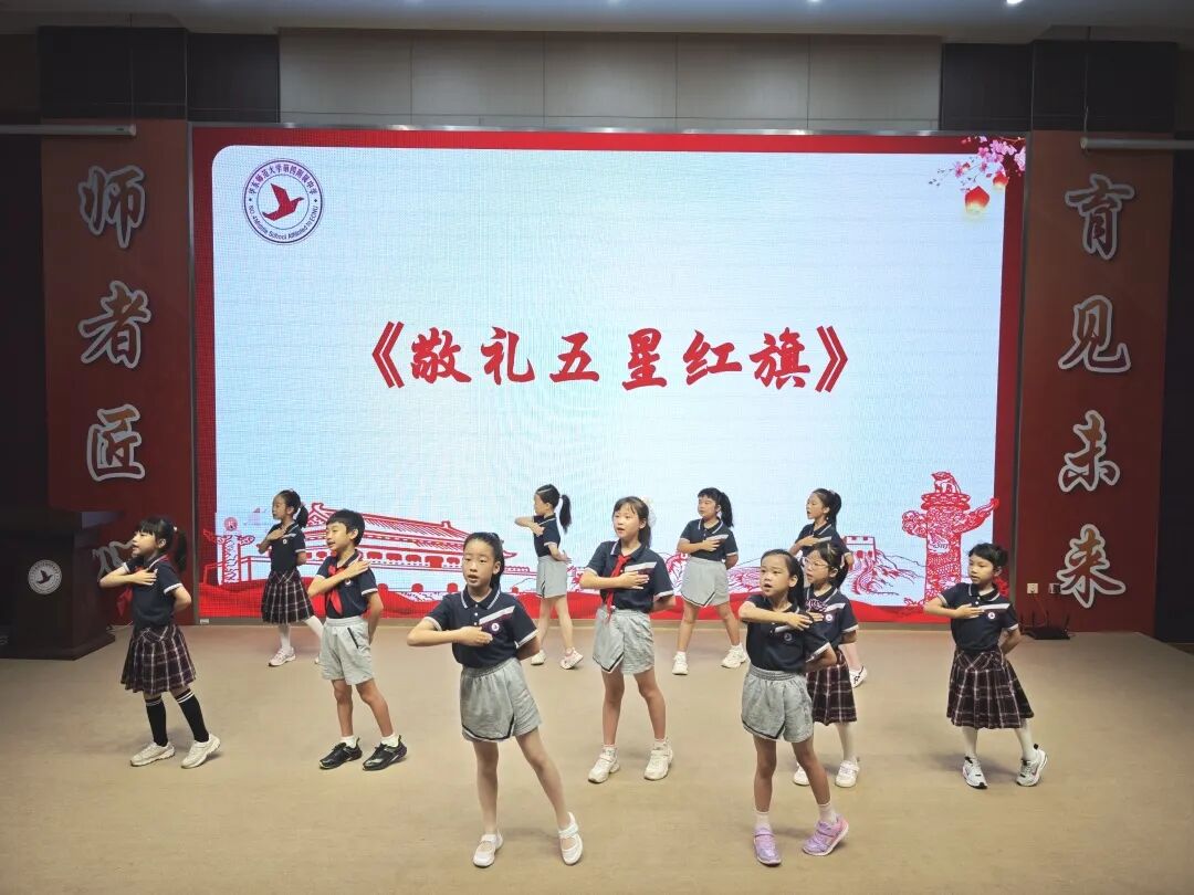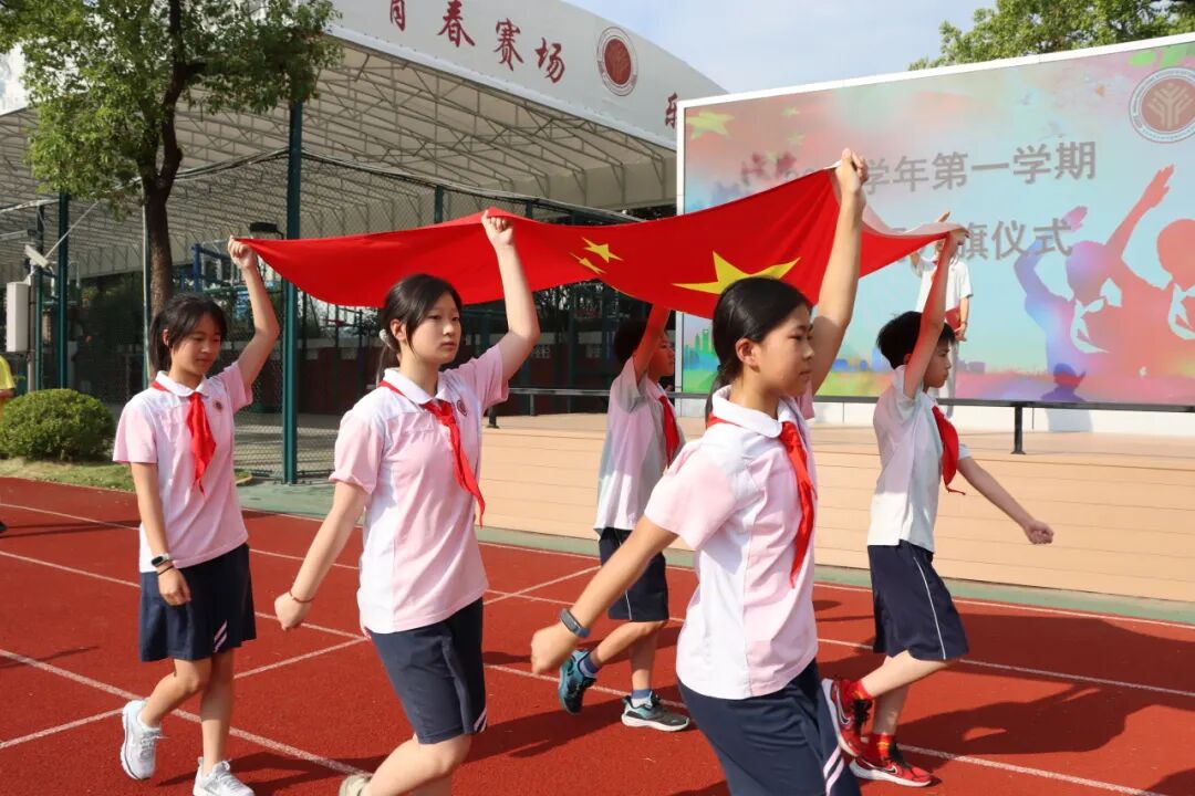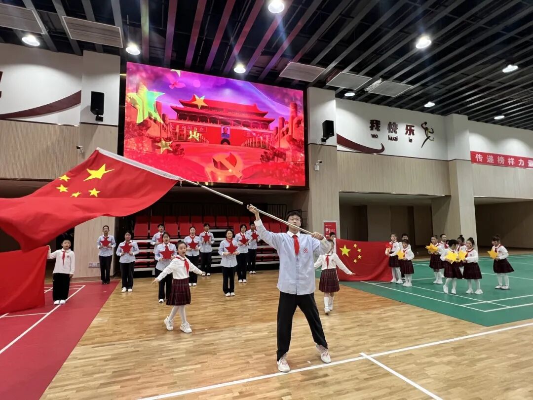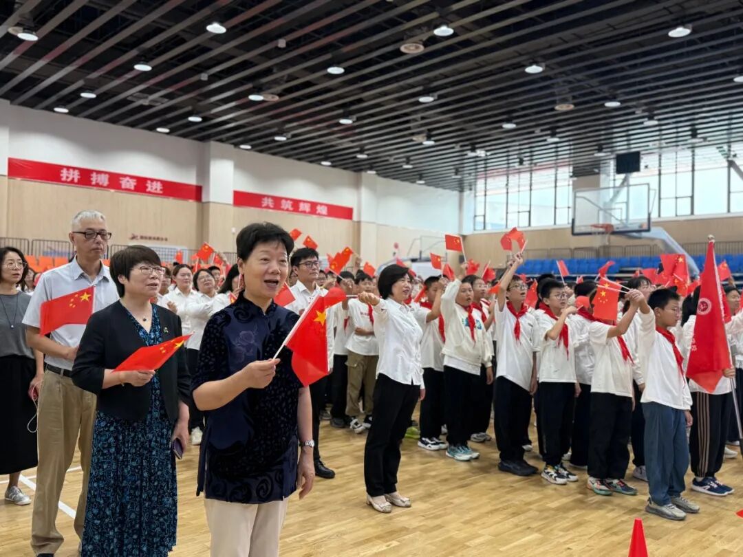 青春向党抒壮志,礼赞祖国启新程。国庆前夕,华东师范大学盐城实验学校的师生们与华东师大教育集团的专家们齐聚体育馆,共同参与“迎国庆”主题升旗仪式。音诗舞《五星闪耀向祖国》拉开活动序幕,红旗舒展,宛如朝阳展翅;大家合唱《我的祖国》,红旗挥舞间形成一片红海,将爱国之情化作奋进的力量,照亮同学们的红色成长之路。
