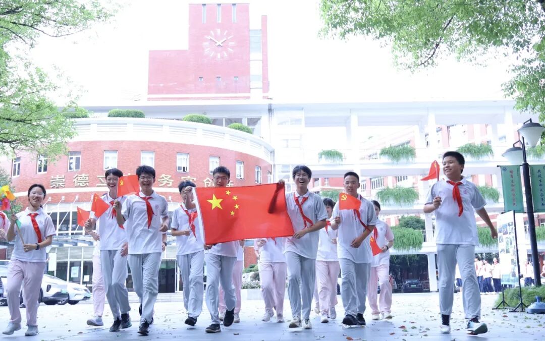 华东师范大学附属东昌中学举行“强国青年志,赤心报家国”主题升旗仪式,邀32516部队官兵升旗,王锡君忆阅兵等经历演讲,勉学子,校与部队联建育爱国情,秉持“行以至诚”校训。