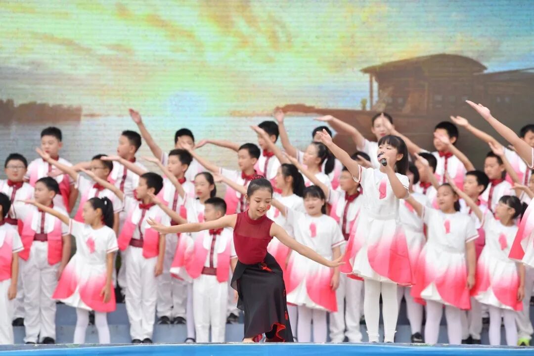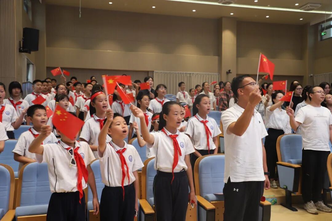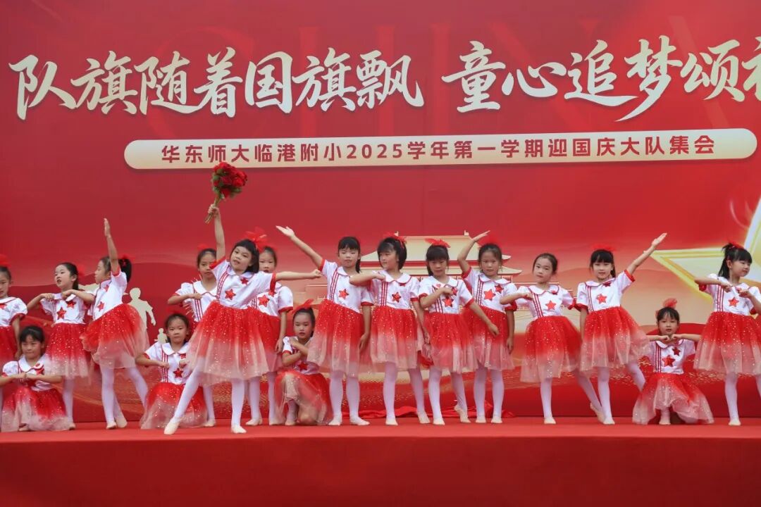 华东师范大学附属浦东临港小学举办迎国庆大队集会活动——“队旗随着国旗飘,童心追梦颂祖国”。活动以诗、颂、歌为纽带,串联起新中国波澜壮阔的76年历史,用爱与梦想礼赞美丽的祖国。红色旋律,激荡心田,师生合唱《我和我的祖国》将爱与梦的主题演绎得淋漓尽致,让现场每个人都感受到家的温暖和祖国的强大。